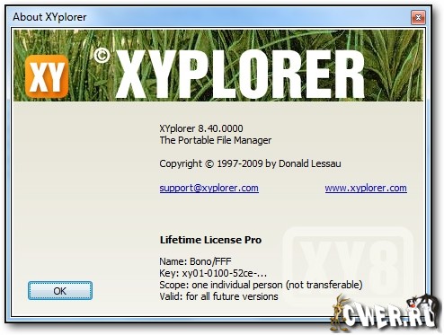 XYPlorer - продвинутый файловый менеджер, работающий под Win98/NT/ME/2000/XP/Vista, достойная замена проводнику Windows, с поддержкой вкладок. Мощный поисковый механизм; предосмотр мультимедийных файлов , графики, аудио, видео; HEX и ASCII просмотрщик файлов; работа с mp3-тегами; широкие возможности для визуализации (выделение цветом избранных папок и пр.); формирование фильтров отображения файлов; экспорт информации о файлах в CSV формат и многое другое. XYplorer не оставляет записей в реестре, поэтому возможна работа со сменных носителей, например с флеш носителях.