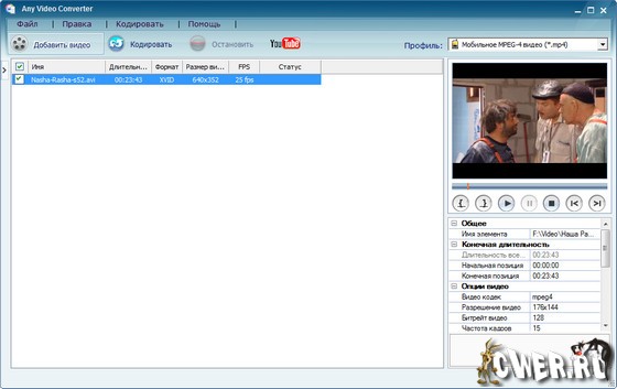 Any Video Converter Free позволяет перекодировать популярные видео форматы (AVI, MOV, RM, MPEG, DVD, WMV, MP4 и FLV) в DVD, VCD, MP4 или FLV. В утилите присутствует возможность использовать для кодирования файлов как готовые профили с установленными параметрами видео, которые ориентированы на определенные устройства (бытовой DVD-проигрыватель, мобильный телефон), так и самостоятельно подбирать свои настройки конвертирования. Перед началом кодирования видео, его можно просмотреть во встроенном проигрывателе. В программе есть функция конвертирования только выбранного участка видео файла, для чего во встроенном плеере достаточно указать начало и конец нужного отрезка.