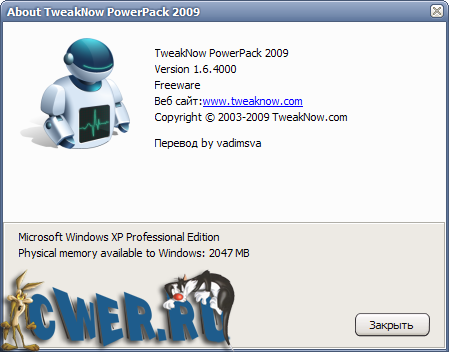 Скачать TweakNow PowerPack 2009 1.6.4 + Rus (6,4 МБ):