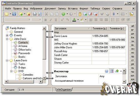 Основные возможности WinOrganizer: