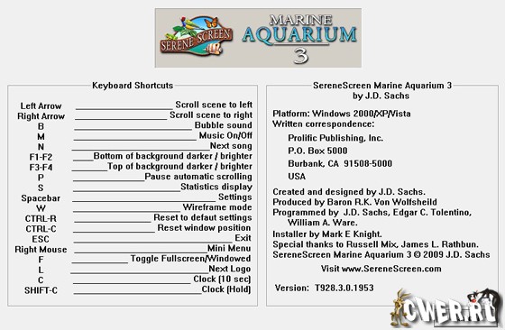 Marine Aquarium - скринсейвер, изображающий морской аквариум в котором экзотические рыбки плавают по вашему экрану. Реалистичность этого продукта ставит его выше всяких похвал. В отличие от всего до сих пор известного Вам в этой области, Marine Aquarium предлагает настоящие 3D объекты с великолепной природной пластикой движения и отработанным алгоритмом освещения, придающим изображению на экране полную фотореалистичность.