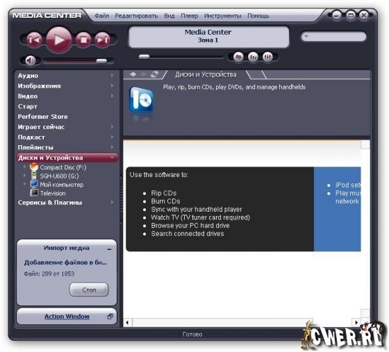 При помощи J. River Media Center Вы сможете, с помощью компьютера, управлять всеми подключенными к нему мультимедиа-устройствами. С помощью этой программы вы сможете копировать музыку на портативные цифровые плееры, перемешать цифровые фотографии с камеры в цифровую библиотеку медиа-центра, записывать из аудио-файлов музыкальные диски, записывать любимые телепрограммы и просматривать их на ТВ. Мультимедийный центр позволяет включить в разных комнатах в одно и то же время разную музыку.