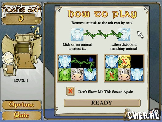 В этой игре вы выступаете в роли Ноя и в преддверии грядущего потопа, пытаетесь собрать каждой твари по паре в Ноев ковчег. Ну, так как игра относится к жанру "три в ряд", в данном случае Ной собирает по три животных. И даже больше - посмотрите сами.