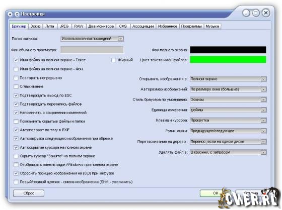 FastStone Image Viewer - вьювер, редактор и конвертор графических файлов. Поддерживает все популярные форматы графики, включая JPEG, JPEG 2000, GIF, PNG, PCX, TIFF, WMF, BMP, ICO, RAW и TGA. Обладает простым и удобными интерфейсом, сочетая его с большим количеством полезных возможностей. Поддерживается пакетное изменение размеров и переименование картинок, удаление ненужных фрагментов, подгонка и изменение цветов, установка водяных знаков и т.д. и т.п. Имеется возможность создавать слайдшоу с более чем 150 эффектами перехода и фоновой музыкой, присутствует различные графические эффекты, ZOOM, полноэкранный режим, поддержка работы со сканером и т.д. Кроме всего этого, программа умеет делать скриншоты экрана, причем как экрана целиком, так и любой его части.