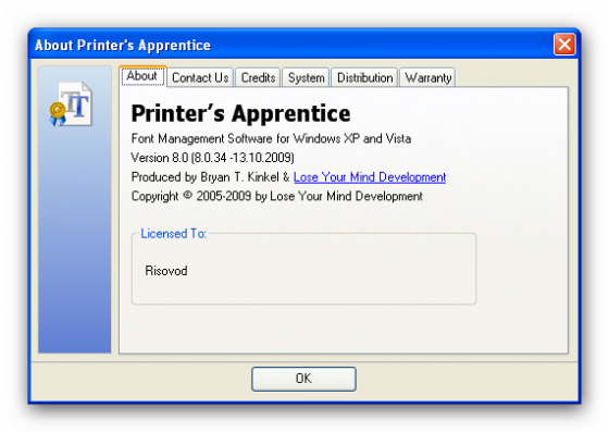 Printers Apprentice - программа представляет из себя потрясающий менеджер шрифтов для операционных систем Windows. Если вы являетесь художником, профессиональным публицистом или просто программным энтузиастом, и если у вас на компьютере имеется большое количество разнообразных шрифтов, то данная программа поможет вам в организации вашей коллекции. Программа поддерживает работу с шрифтами форматов TrueType, Adobe Type, и OpenType. С помощью этой утилиты вы сможете просматривать, сравнивать и выводить на печать ваши шрифты, установленные в системе. Также программа позволяет просматривать шрифты в указанных директориях, которые еще не установлены в систему, но хранятся на жестком диске - для этого в программу встроен браузер для просмотра шрифтов из указанного хранилища. Вы можете устанавливать и удалять шрифты намного быстрее, проще и удобнее с данной программой, чем это делаете через панель управления.