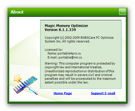 Magic Memory Optimizer - предназначена для решения трудных и критических проблем возникающих в оперативной памяти компьютера. Память - самый драгоценный ресурс на вашем компьютере; если ее становится недостаточно, ваш компьютер начинает медленно работать, "зависать" или наступает крах, - падение системы. Сама же Windows не управляет памятью на должном уровне. Со временем, не имеет значения какой объем памяти у вас имеется, Windows постепенно для своей работы и прикладных программ отбирает остатки свободной памяти, что легко может привести вашу систему к краху. Magic Memory Optimizer решит все эти проблемы, высвобождая и восстанавливая беспечно растраченную системой память для ваших программ.