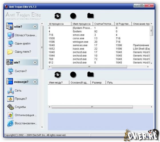 Anti-Trojan Elite - программа для очистки компьютера от таких вредоносных файлов, как трояны, кейлогеры и прочее. Сканирует не только жесткий диск (включая архивы ZIP CAB), но и смотрит на то, какие процессы запущены. Также располагает менеджером сетевых процессов, при помощи которого можно определить, где запущен нежелательный процесс. Кроме этого, вы можете просмотреть ключи и значения реестра и удалить подозрительные, починить Internet Explorer, оптимизировать работу Windows и многое другое. Помимо этого, в состав программы входят утилиты для блокирования подозрительных TCP-соединений и процессов, а также для исправлений ошибок в реестре, вызванных деятельностью вредоносных программ.