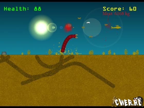 Простая, но очень затягивающая аркада. Вы управляете гигантским песчаным червем (похожим на Шаи-Хуллуда из “Дюны”) и должны обеспечивать его надлежащим пропитанием. В качестве еды, разумеется, выступают животные, люди и прочие сужества, путешествующие по поверхности земли.