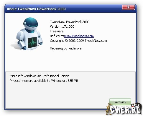 Скачать программу TweakNow PowerPack 2009 1.7.1 + Rus (10,64 МБ):