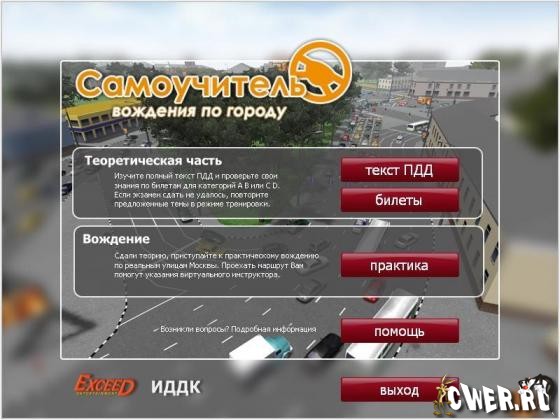 Самоучитель подготовит Вас к теоретическому и практическому экзаменам на получение водительского удостоверения категорий: А, B, С, D, а главное – поможет овладеть навыками управления автомобилем в условиях города, изучить реальные маршруты московских экзаменационных подразделений ГИБДД. Благодаря ЗD-тренажеру, Вы можете смело тренироваться ездить по дорогам Москвы под присмотром «виртуального инструктора», который подскажет маршрут и зафиксирует ошибки.