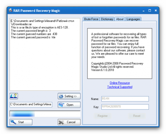 RAR Password Recovery Magic – удобная и мощная программа для восстановления паролей от RAR архивов, созданных программой WinRAR. При подборе пароля используется "brute-force" атака и атака по довольно внушительному лист-словарю. При длительной процедуре может работать на заднем плане, не мешая текущей работе.