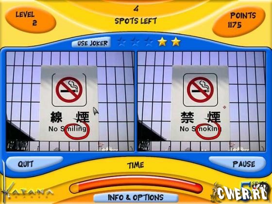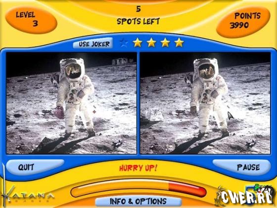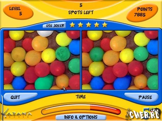 Известнейшая игра "найди различия"! Эта умно разработанная игра содержит намного больше, чем можно подумать: и дружественный интерфейс, и оригинальную и приятную графику, и неожиданные сюрпризы. Но настоящая изюминка игры в том, что различия выбираются случайным образом, и игра никогда не повторяется. Учтите, вы можете серьезно увлечься этой сказочно выглядящей игрой с превосходным звуком - веселой переделкой любимой всеми классики.