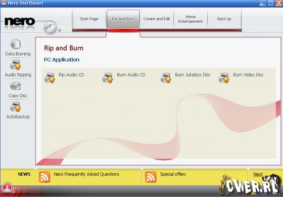 Этот простой в использовании, но мощный набор мультимедиа дает вам свободу создавать, считывать, копировать, записывать, редактировать, совместно использовать и передавать данные в сети. Что бы это ни было — музыка, видео, фото или данные — наслаждайтесь ими и используйте совместно с родными и близкими когда угодно и где угодно. Ваша цифровая составляющая жизни еще никогда не была такой свободной, ощутимой и веселой, как с простым в использовании командным центром Nero StartSmart.