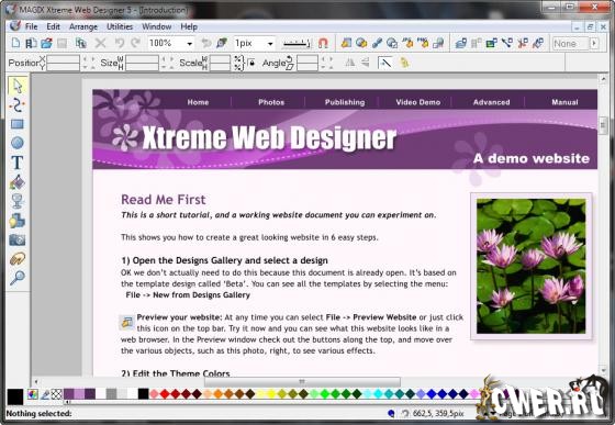 Professional package for designing and creating web-sites, offering unlimited freedom in layout and design pages with the most complex designs.