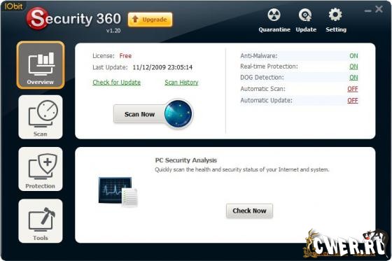 IObit Security 360 - утилита предназначена для удаления шпионских программ и вредоносного ПО, которая обнаруживает, удаляет и защищает ваш компьютер от различных потенциальных шпионов, рекламное ПО, трояны, клавиатурных шпионов, ботов, червей, и угонщиков.