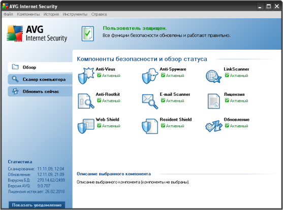 AVG Internet Security - комплекс программ для защиты ПК от опасных объектов и сетевых угроз. Программа блокирует вирусы, трояны, червей, шпионске программы, а фаервол защитит от возможных сетевых атак.