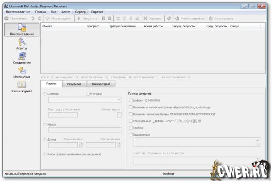 - Находить пароли к документам, задействуя вычислительные мощности всех компьютеров, объединенных в сеть
