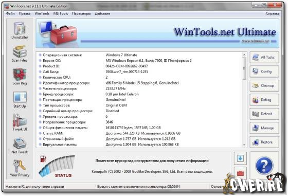WinTools.net Ultimate – набор инструментов для оптимизации операционной системы Windows. В состав программы входят компоненты для полного удаления нежелательных программ и «мертвых» ссылок реестра, а также для контроля процессов, настройки системы, интернет-соединений и интерфейса. Кроме того, имеются утилиты для надежного хранения конфиденциальной информации.