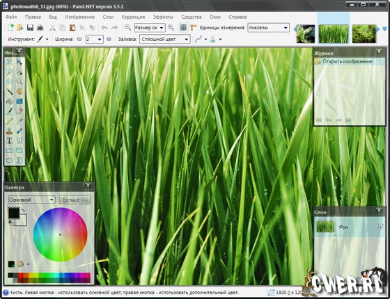 Paint.NET - Простой, но мощный и удобный редактор графики. Позиционируется как отличная замена стандартному MS Paint из поставки Windows. Поддерживаемые форматы: BMP, IPEG, PNG, TIF, GIF, TGA и собственный формат PDN. Основные возможности: работы со слоями, применение эффектов, работа со сканером и камерой, коррекция красных глаз, масштабирование от 1% до 3200%.