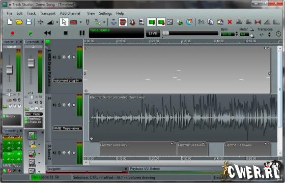 n-Track Studio - полнофункциональная многотрековая аудиостудия, позволяющая создавать свои собственные музыкальные композиции профессионального качества. Программа работает с большинством аудиоформатов, позволяет накладывать всевозможные эффекты на каждый трек с прослушиванием в реальном режиме времени, работать с каналами, исправлять синхронизацию и т.п. Кроме таких стандартных эффектов, как Reverb, Compression, EQ, Echo, Auto volume, Pitch Shift и Chorus, программа позволяет использовать DirectX и VST 2.0 плагины от сторонних разработчиков.