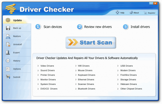 Driver Checker - легкая в использовании программа для эффективного обнаружения устаревших или поврежденных драйверов различных устройств с целью их обновления на самые новые версии, совместимые с вашей системой. Данная программа поможет вам обновить до последних версий все системные драйверы, установленные в вашей системе, в особенности программа поможет вам, в случае, если вы не можете найти новые версии оригинального производителя. Программа позволяет производить глубокое сканирование устройств, обнаруживать и обновлять устаревшие версии, если таковые имеются, полностью резервировать и восстанавливать, если это необходимо. Также вы сможете полностью удалять выбранные драйверы из системы. Программа проделывает все эти операции через легкий в использовании интерфейс и позволяет вашей системе быть более безопасной, стабильной и всегда обновленной.