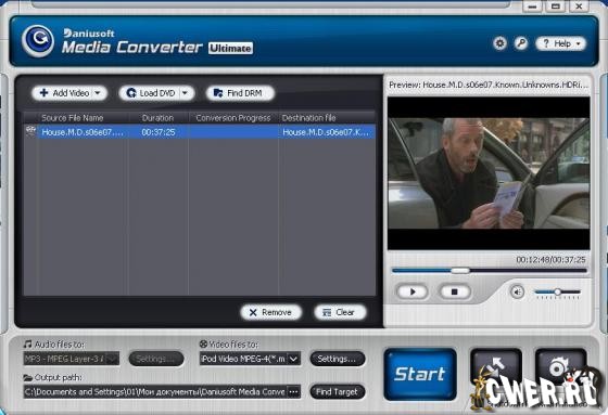 Daniusoft Media Converter Ultimate - это мощная софт программа для конвертации обычных медиа файлов и файлов, защищенных механизмом DRM. Вы сможете конвертировать защищенные WMA, WMV, ASF файлы в обычные аудио/видео файлы: WMA, M4A, AAC, AC3, WAV, MP3, WMV, ASF в MP3, WAV, AAC, MP4, AVI, FLV, 3GP и т.д. С помощью конвертера вы сможете убрать защиту DRM и конвертировать аудио/видео файлы, чтобы проигрывать их на переносных устройствах, таких как iPod, PSP, Zune, Creative Zen, Archos, мобильных телефонах и т.д.
