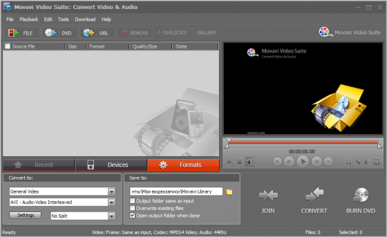 Movavi VideoSuite — это восемь программ для работы с видео в одной упаковке. Конвертируйте видео — включая видео высокого разрешения (High Definition)! — в любые форматы и для любых устройств. Копируйте незащищенные DVD. Редактируйте видео на монтажном столе. Накладывайте музыку и звуковые эффекты. Добавляйте субтитры. Улучшайте качество видео с помощью профессиональных фильтров. Добавляйте переходы и спецэффекты. Создавайте слайдшоу всего одним щелчком мыши. Захватывайте видео — включая видео высокого разрешения — с цифровых или вебкамер. Режьте и соединяйте видео.