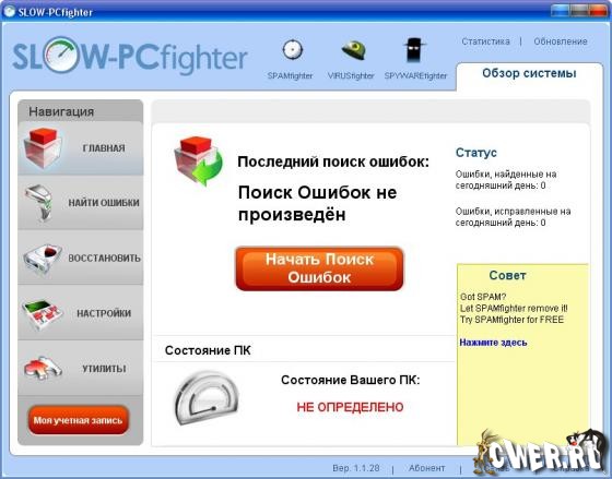 SLOW-PCfighter — программа для оптимизации и ускорения работы Вашего компьютера. Есть множество причин медленной работе компьютеров, так же как и любой компьютер становится менее эффективным со временем. Но это всего лишь значит, что Вашему компьютеру нужна профессиональная помощь.
