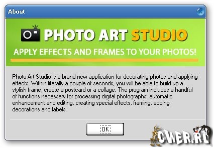 Photo Art Studio представляет собой новое программное обеспечение для украшения фотографий. В комплект входит пакет из пяти удобных программ для создания открыток, коллажей, наложения рамок и пакетной обработки фотографий. В течение буквально нескольких секунд, вы сможете создать стильную рамку, создать открытку или коллаж.
