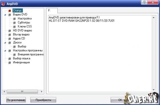 AnyDVD - предназначена для снятия защиты с любых DVD-дисков, так что вы сможете просматривать DVD-фильмы на компьютере с DVD-ROM, региональный код которого не соответствует этому DVD-диску. Даже если ваш привод не "обеззонен", у вас есть возможность копировать диски с любым региональным кодом напрямую с DVD-ROM на DVD±RW!