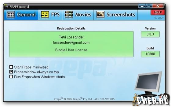 Скачать программу Fraps v3.0.3 build 10808 (2,27 МБ):