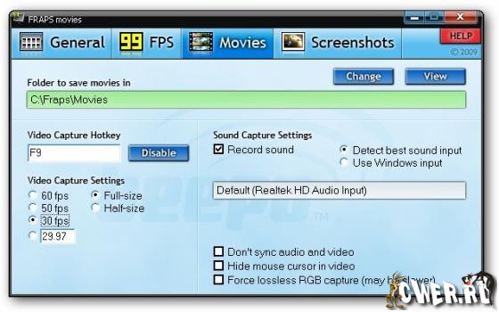 Fraps состоит из трех модулей Benchmarking Software, Screen Capture Software, Realtime Video Capture Software. Benchmarking Software - показывает, сколько кадров в секунду (FPS) выдает ваше 3d-приложение. Позволяет сохранять статистику на диск. Screen Capture Software - позволяет при нажатии горячей клавиши снимать скриншоты экрана любого 3d-приложения или видео-фильма. Все скриншоты автоматически переименовываются и датируются. Realtime Video Capture Software - позволяет записывать все, что происходит на экране монитора в видео-файл. Захватывает звук и видео вплоть до разрешения 2560x1600 и 100FPS, идеально подходит для записи игр.