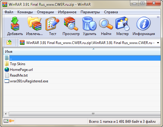 Скачать русскую сборку WinRAR 3.91 Final x64 (2,5 МБ):