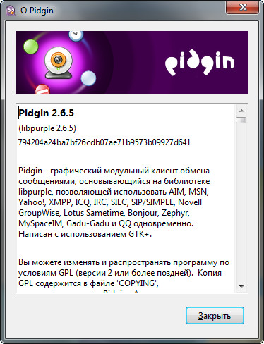 Скачать программу Pidgin 2.6.5 (13,85 МБ):