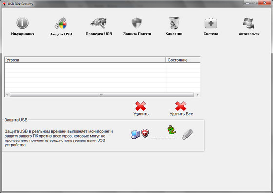 - USB Disk Security - лучшая антивирусная программа для постоянной защиты компьютера от угрозы заражения от USB носителей, без надобности в обновлениях сигнатур, отлично работающая с вашим основным антивирусом.