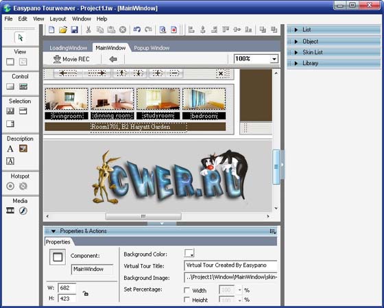 • Создавать виртуальные туры как вэб-апплет формат, который легко можно разместить в сети. Для его просмотра Вам не понадобятся дополнительные программные модули.