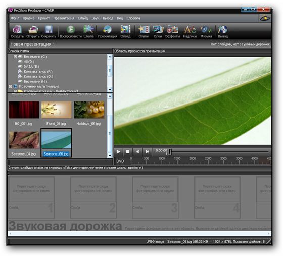 - Полностью настраиваемая сетка предпросмотра слайдов позволяет точно установить позицию для ваших фото и видео