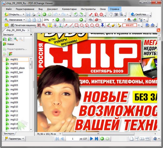 PDF-XChange Viewer - программа для просмотра файлов в формате PDF, более быстрая и более функциональная в отличие от известного просмотрщика Adobe Reader. Кроме стандартных возможностей программа позволяет одновременно просматривать сразу несколько файлов, добавлять комментарии и аннотации к документам, "на лету" редактировать любые страницы PDF, экспортировать содержимое в файлы BMP, JPEG, TIFF, PNG и другие, а также осуществлять другие действия.