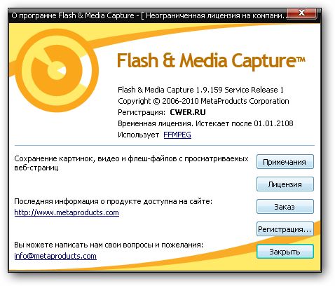 Скачать программу MetaProducts Flash and Media Capture 1.9.159 SR1 (4,09 МБ):