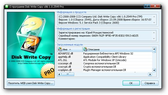 Скачать программу Disk Write Copy Professional Edition 1.0 Build 2549 (16,33 МБ):