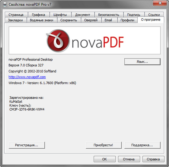 Скачать программу novaPDF Professional 7.0 Build 327 (6,32 МБ):