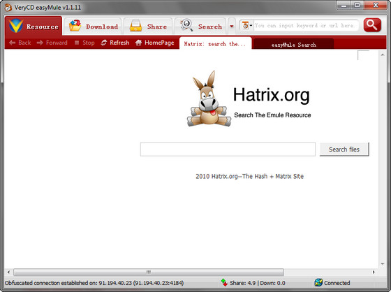 easyMule - бесплатное и доступное программное обеспечение P2P для разделения ресурсов. С easyMule вы можете использовать все всемирные компьютеры и серверы, интегрированные в огромные ресурсы сети для шеринга информацией. Пользователи могут искать ресурсы в этой огромной сети и загружать файлы многоточечной передачей для лучшей скорости.