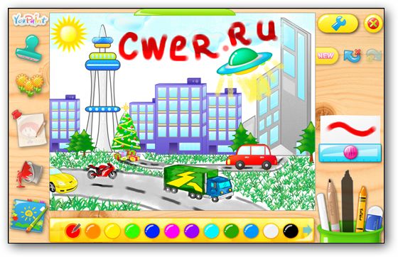 CyberLink YouPaint - функциональный графический редактор с поддержкой сенсорных средств ввода. Программное обеспечение включает полный набор инструментов для рисования, включая перья, карандаши, цветные мелки, ластики и палитра, предоставляющая быстрый доступ к шестидесяти цветам.