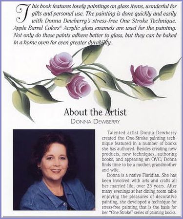 Более дюжины прекрасных проектов росписи по стеклу от художницы Донны Дьюберри. Она рассказывает о кистях и красках, которые использует в своем творчестве, о собственной технике росписи "One Stroke" (один штрих), по которой, кстати, проводит семинары и представляет на ваше обозрение свои работы.