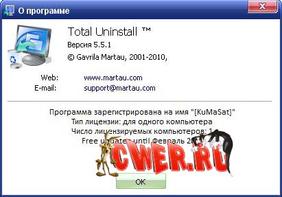 Скачал С какого то сайта этот Тотал(тихая установка)но регистрация (ошибка).Скачал Total Uninstall Professional 5.5.1 с этого сайта.Взял серийный номер и и воткнул в свой триал тотал и он поблагодарил за регистрацию. Все пашет без проблем