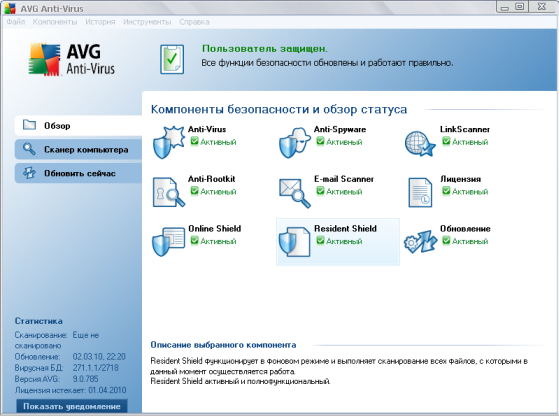 Скачать программу AVG Anti-Virus Professional 9.0.785 Build 2708 (96,86 МБ):