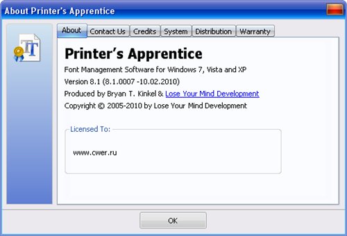 Printer's Apprentice представляет из себя потрясающий менеджер шрифтов для операционных систем Windows. Если вы являетесь художником, профессиональным публицистом или просто программным энтузиастом, и если у вас на компьютере имеется большое количество разнообразных шрифтов, то данная программа поможет вам в организации вашей коллекции. Программа поддерживает работу с шрифтами форматов TrueType, Adobe Type, и OpenType. С помощью этой утилиты вы сможете просматривать, сравнивать и выводить на печать ваши шрифты, установленные в системе. Также программа позволяет просматривать шрифты в указанных директориях, которые еще не установлены в систему, но хранятся на жестком диске - для этого в программу встроен браузер для просмотра шрифтов из указанного хранилища. Вы можете устанавливать и удалять шрифты намного быстрее, проще и удобнее с данной программой, чем это делаете через панель управления.