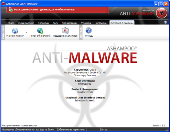 Скачать программу Ashampoo Anti-Malware 1.1.1 (87,49 МБ):