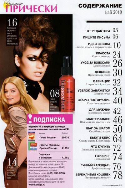 Ежемесячный практичный журнал для женщин, следящих за своей красотой. Издание представляет большой выбор причесок, советы по уходу за волосами, лицом, телом, рекомендации стилистов и косметологов, интервью и рассказы знаменитостей.
