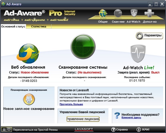 Ad-Aware Pro Anniversary Edition - программа для обнаружения и удаления из операционной системы разнообразных "шпионских" модулей.